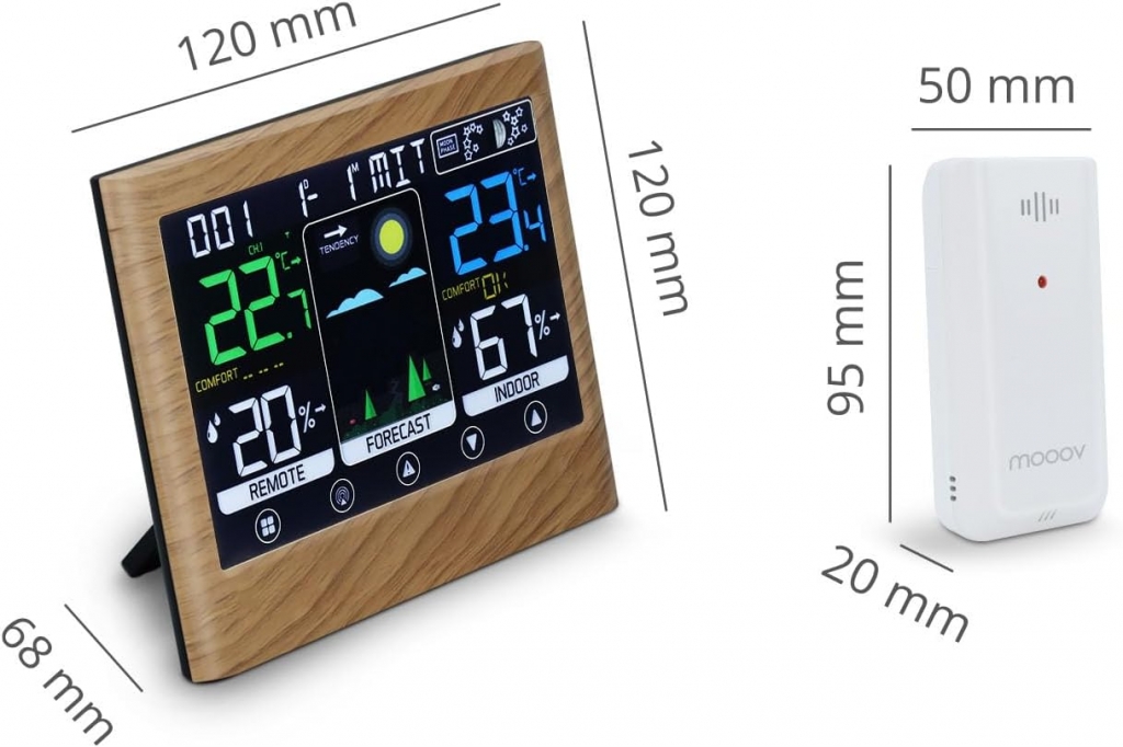 Questa stazione meteo permette di monitorare tutte le previsioni grazie al suo barometro a 6 icone che illustrano le condizioni delle prossime 12-24 ore e le 13 fasi lunari.