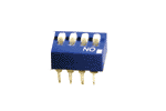 Interruttore Dip-Switch da C.S. - 4 poli. Corpo: resina epossidica. Passo: 2.54mm. Contatti: bronzo fosforoso argentato. Portata: 100mA - 50Vcc.