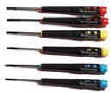 Set di 7 cacciaviti di precisione manico in plastica con top girevole, corpo in acciaio cromo-vanadio.